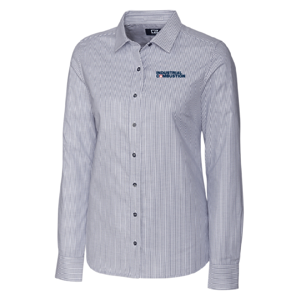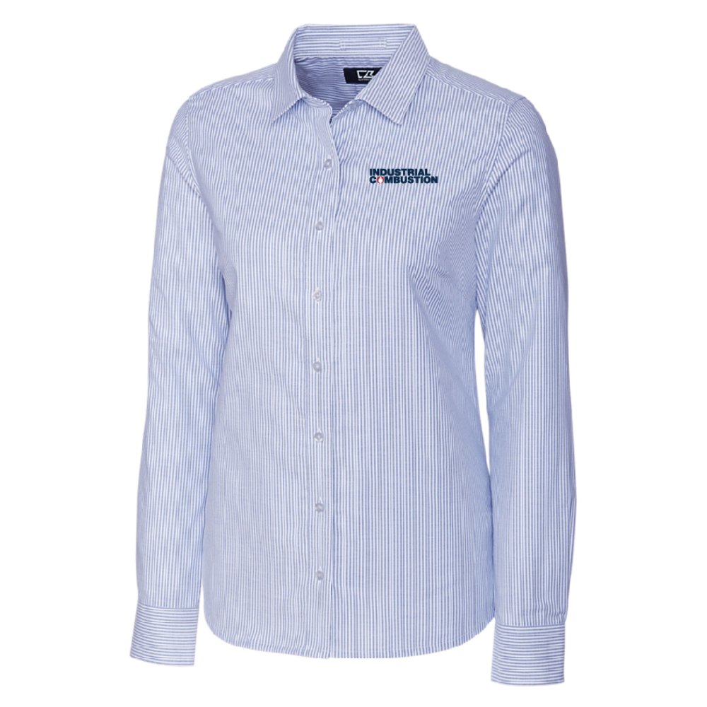 sku: DS-LCW0000464% Cotton, 34% Polyester, 2% Spandex, Epic Easy Care, Wrinkle resistant finish, Vertical Stripe Oxford, Collar stand, Button front, Forward shoulder with back yoke, Curved hem, C&B Pennant on inside placket, Imported