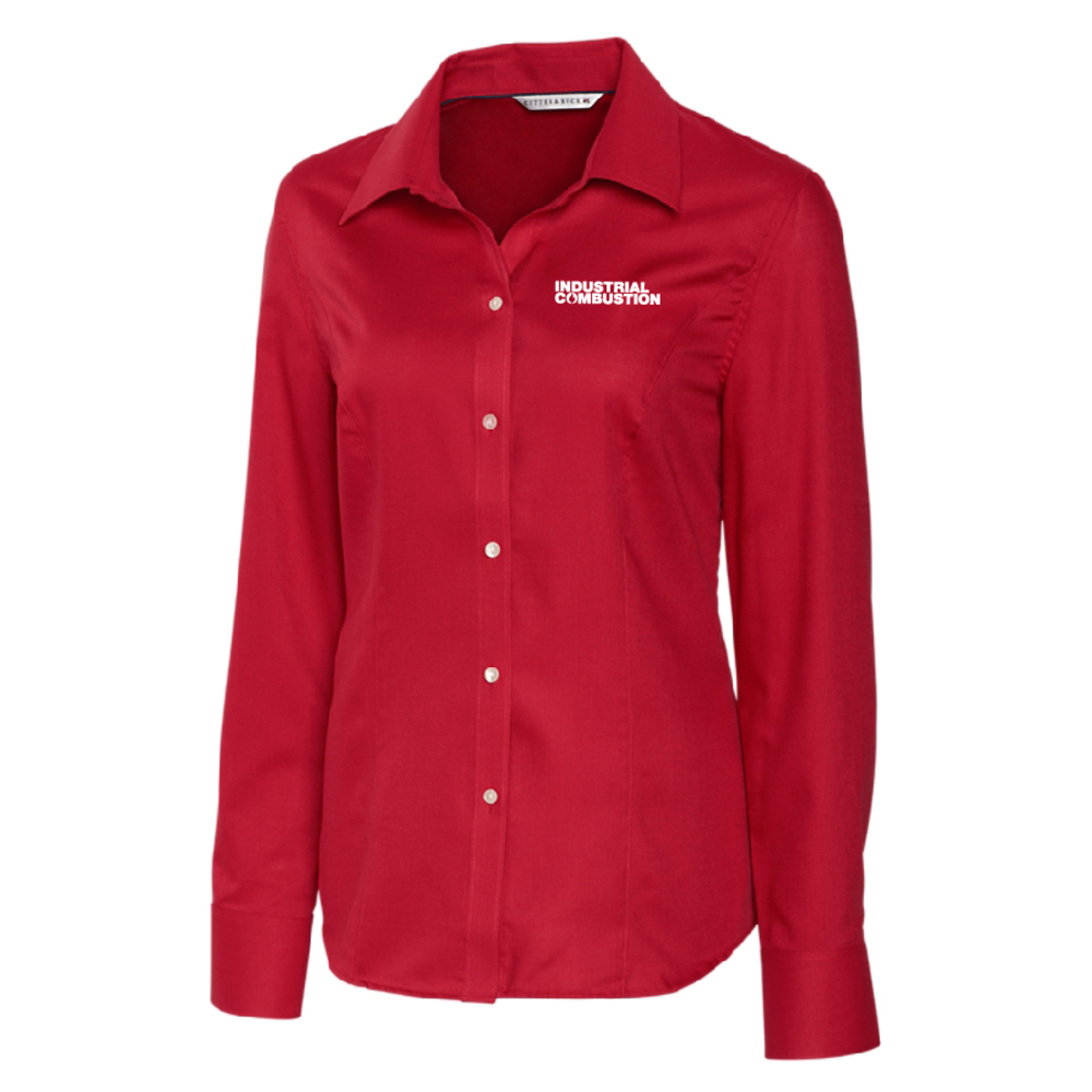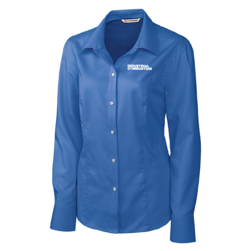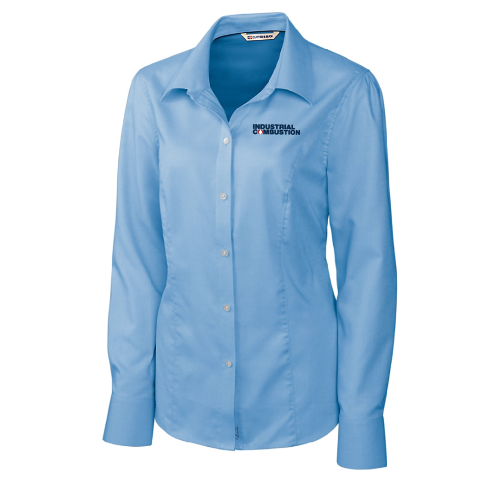 sku: DS-LCW04124Dobby, Epic Easy Care, Wrinkle-resistant finish, Taped seams, Yarn dye dobby, Y-neck styling, Button front, Princess seams, Accent zigzag stitching, Button sleeve placket at cuff, Novelty buttons, C&B Pennant on Inside Placket, Imported
