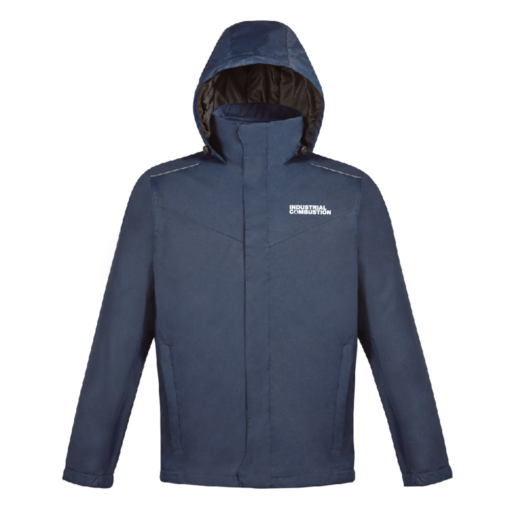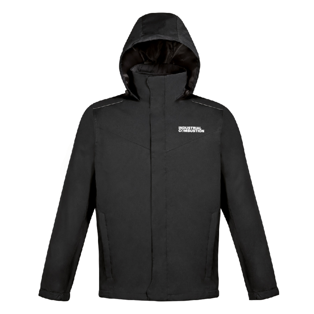 - inside placket; roll-away hood; adjustable cuffs with tabs